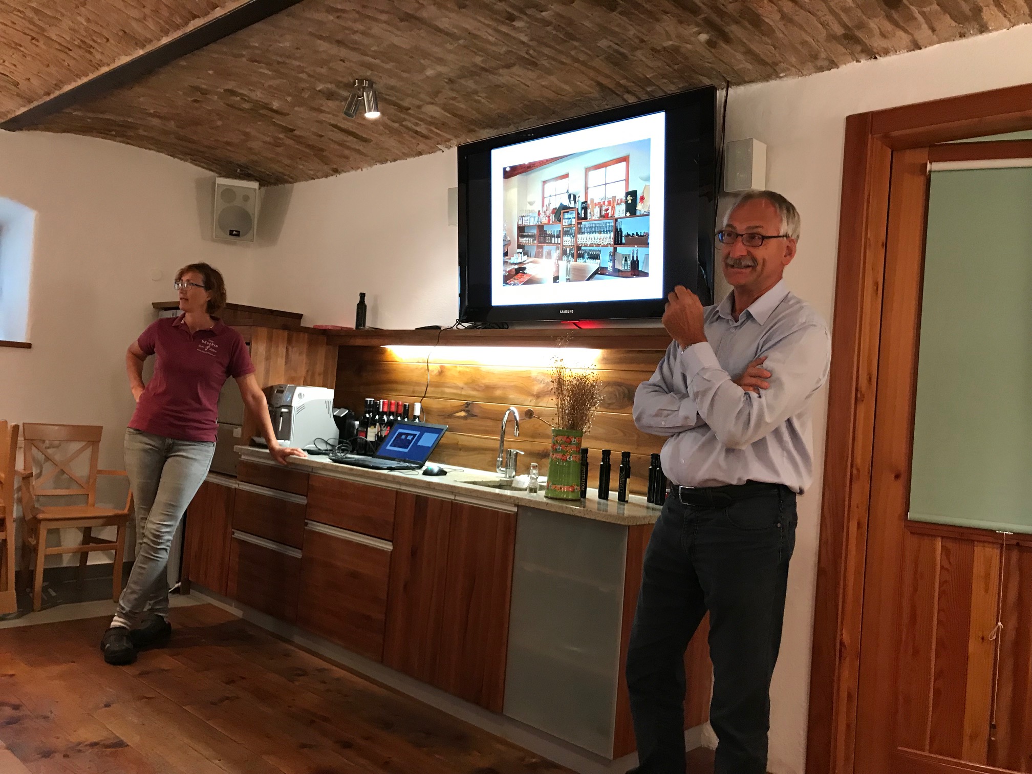 Iz Kanala smo zgodaj zjutraj z našim šoferjem Silvom iz Silbusa krenili iz Kanala, Brice smo pobrali v Solkanu in se odpeljali čez Italijo po dolinah do Avstrije. Najprej smo se ustavili na kmetiji Gams - v oljarni družine Mikl. Kmetija se ukvarja s pridelavo olj in jagod, imajo pa še kar nekaj zanimivih dejavnosti. Poizkusili smo njihova olja, in si ogledali njihovo kmetijo, kjer svoje pridelke tudi prodajajo.